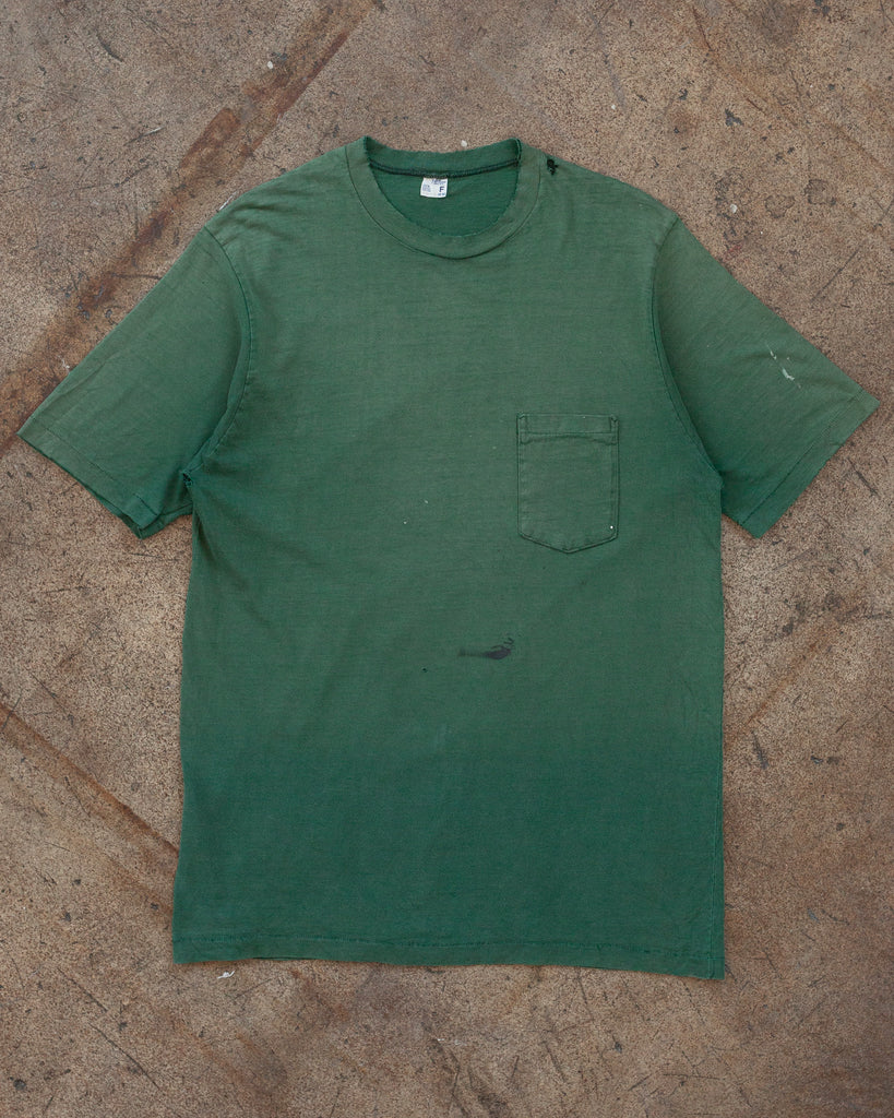 Single Stitched Sun Faded Pine Green Blank Pocket Tee - 1980s