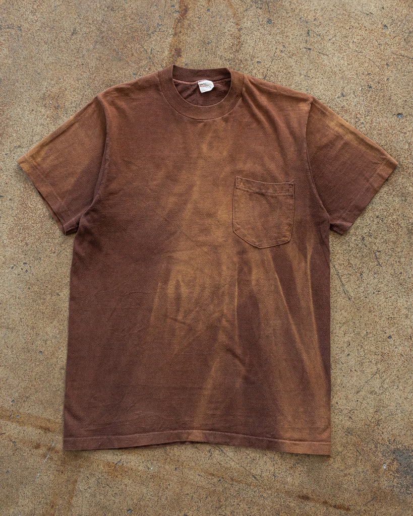Single Stitched Sun Faded Contrast Collar Blank Removed Pocket Tee - 1990s