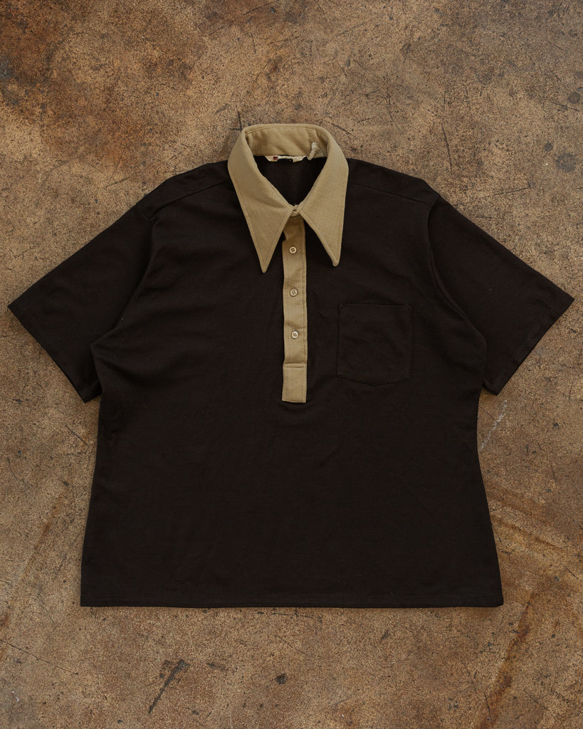 Brown & Cream Contrast Collar Polo Shirt - 1970s