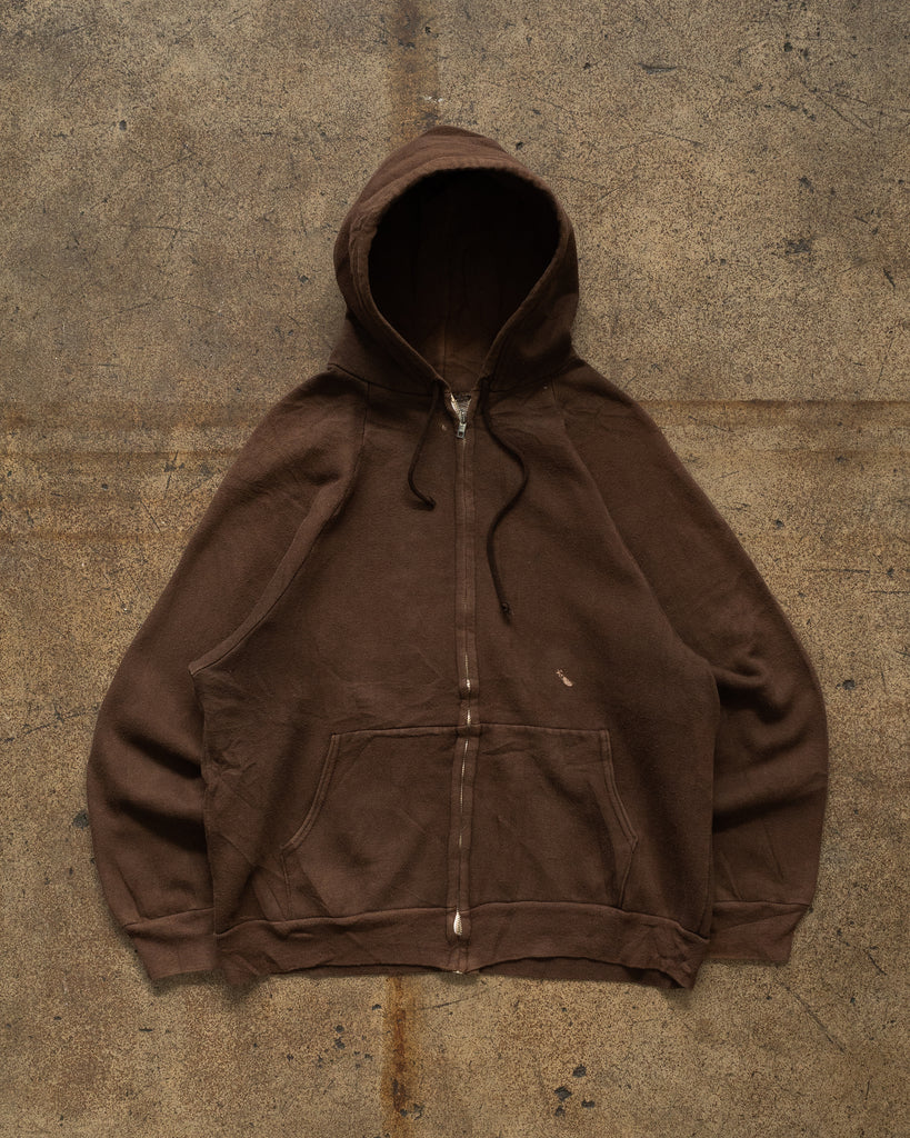 Brown Blank Zip-Up Hooded Sweatshirt - 1980s