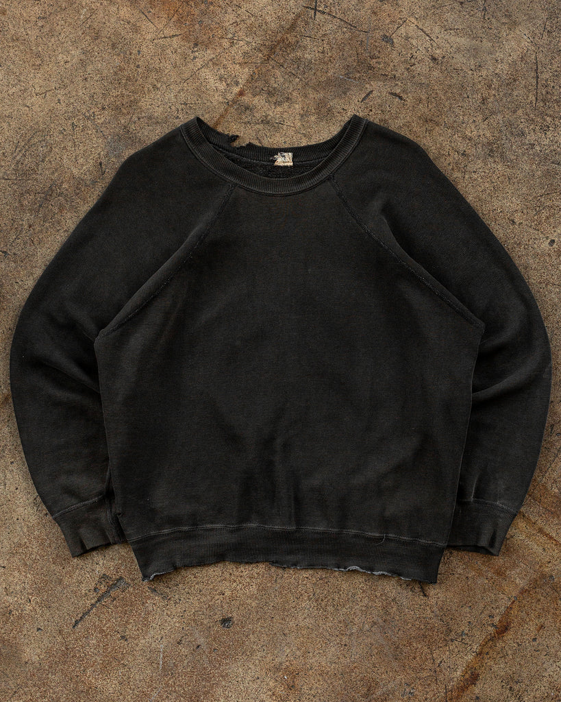 Mayo Spruce Faded Black Blank Distressed Crewneck Sweatshirt - 1960s
