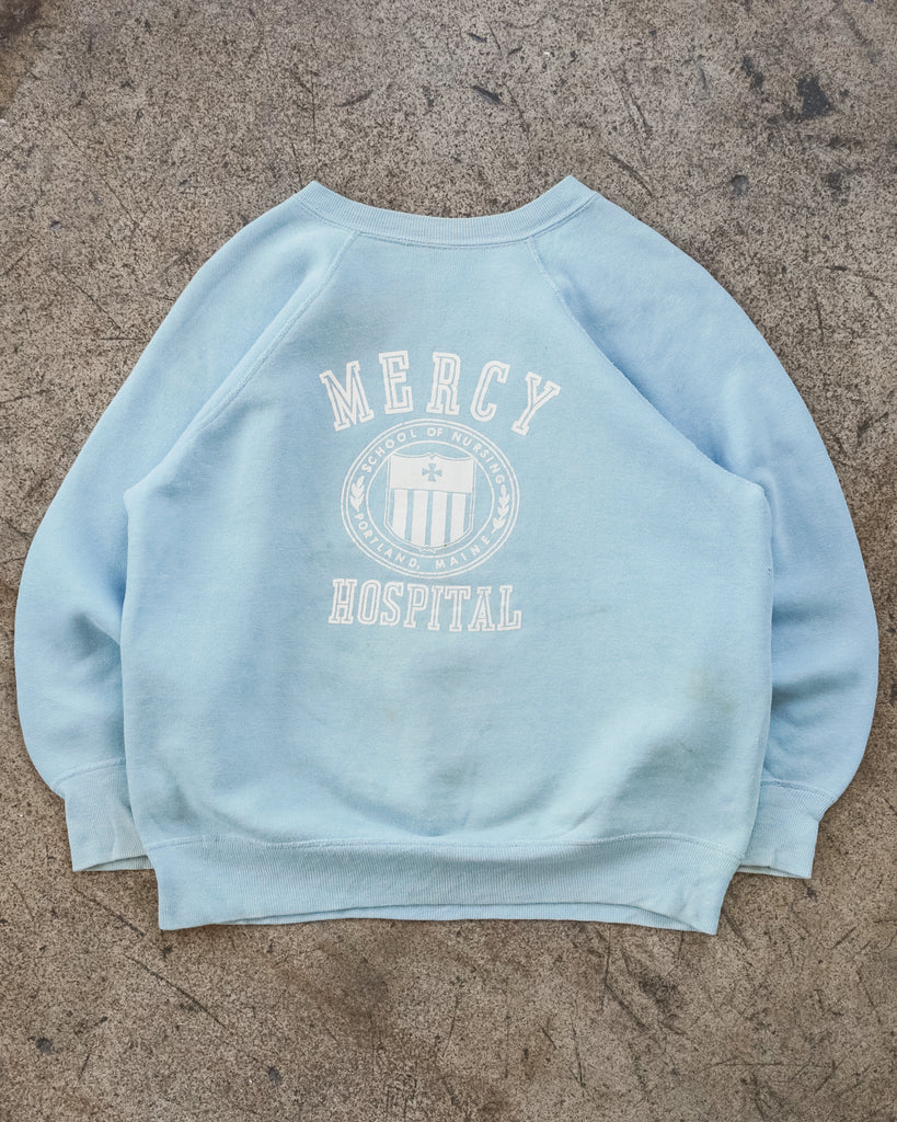 "Mercy Hospital" Baby Blue Raglan Sweatshirt - 1980s