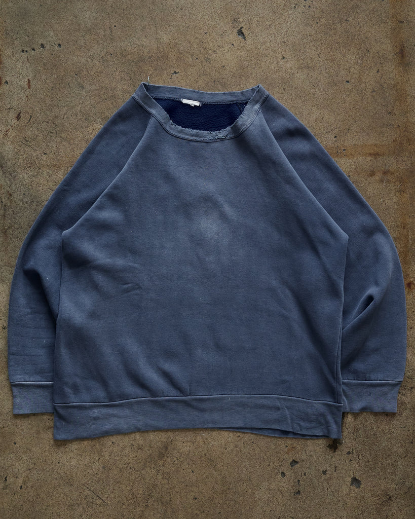 Sun Faded & Distressed Grey Blank Raglan Sweatshirt - 1980s