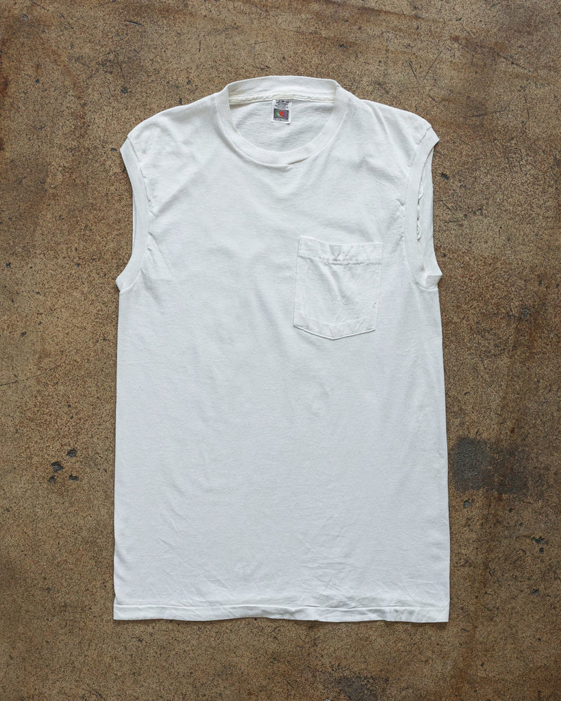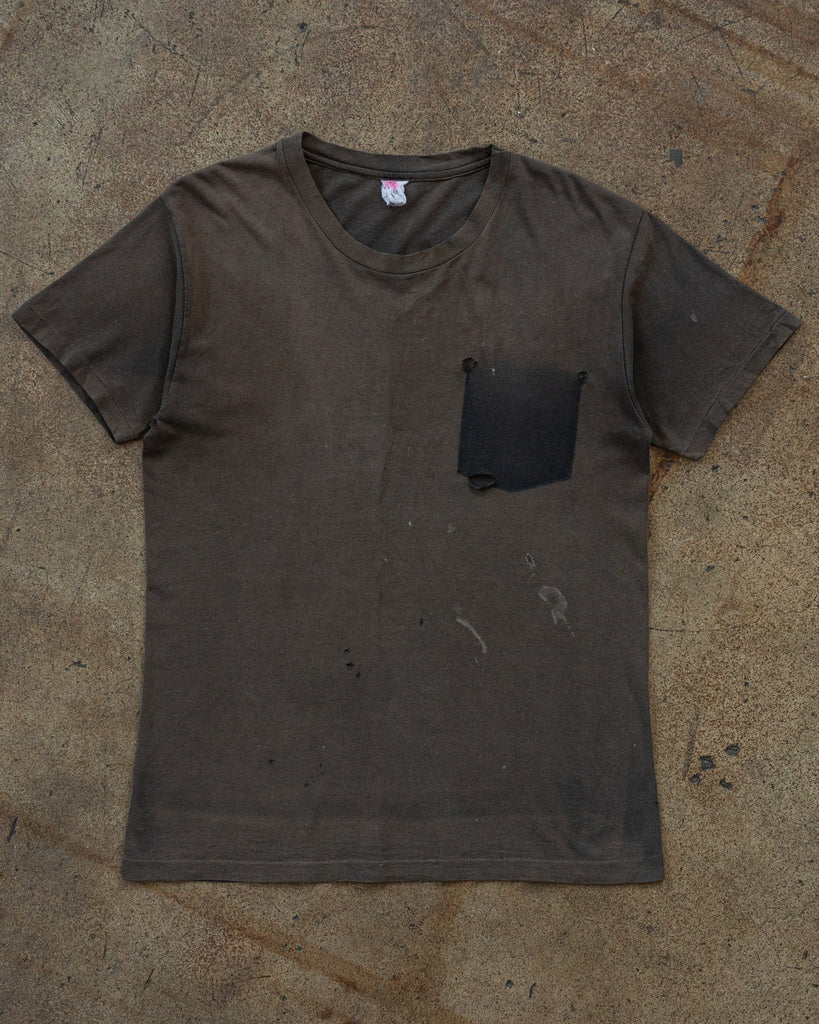 Sun Faded Brown Blank Pocket Tee - 1980s