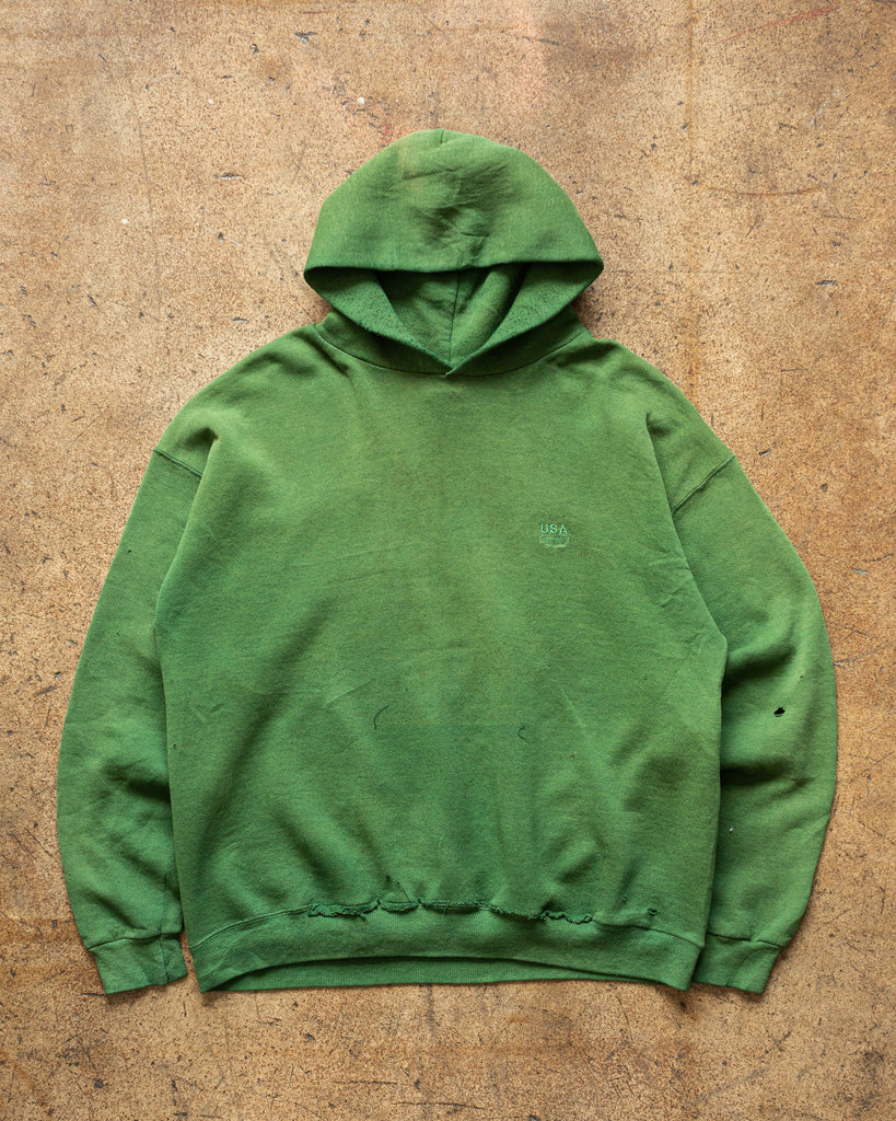 Sun Faded Green Zip-Up Hooded Sweatshirt - 1980s