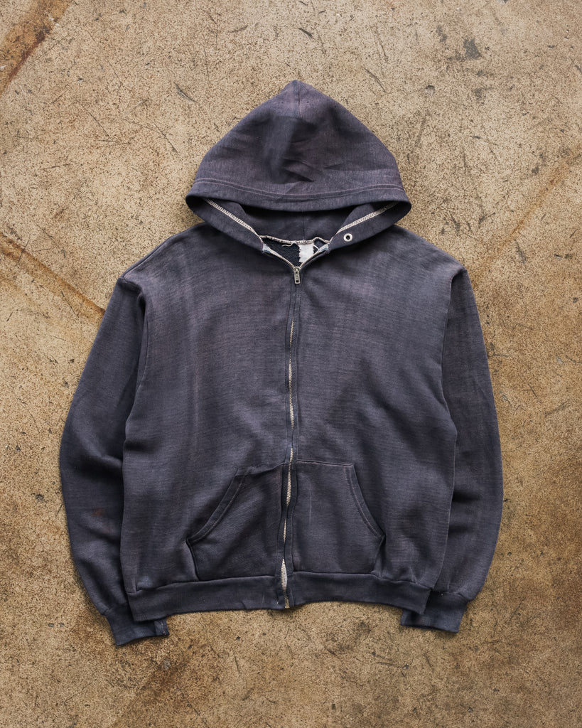 Sun Faded Thermal Lined Navy "Gene" Zip-Up Hooded Sweatshirt - 1980s