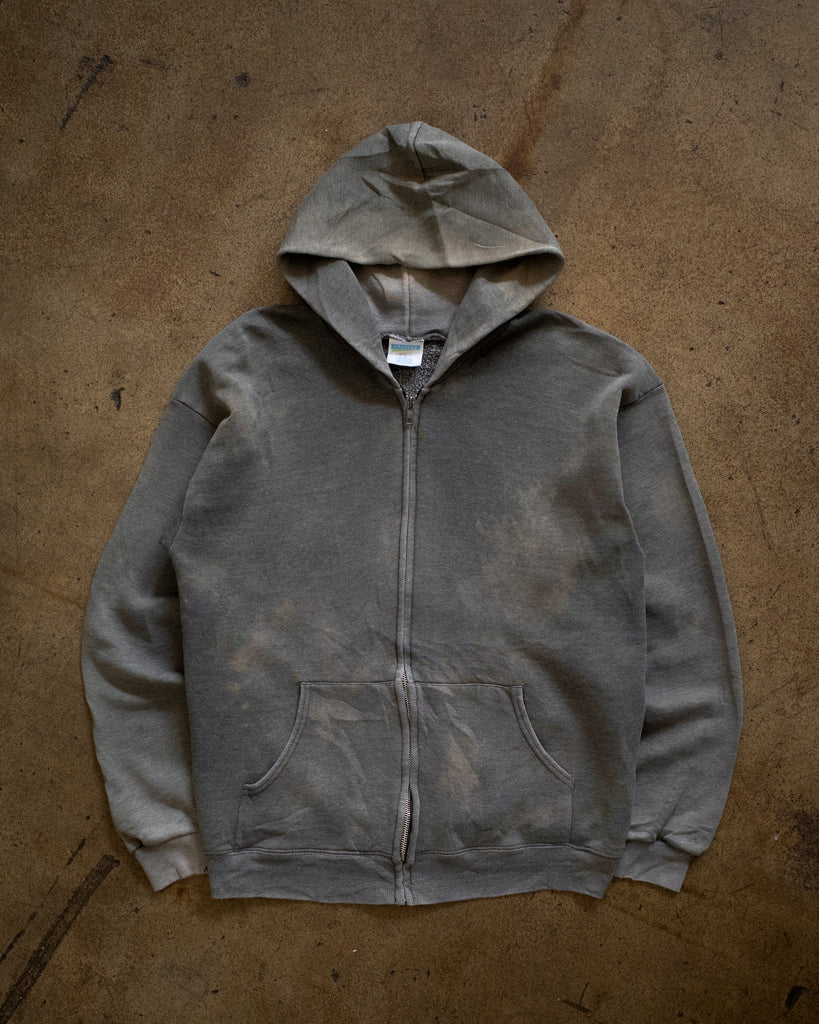 Sun Faded Grey Zip-Up Hooded Sweatshirt - 1980s