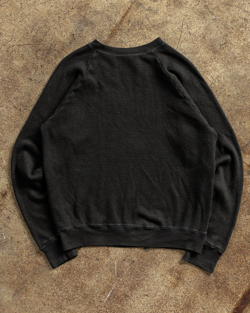 Black Overdyed Thermal Raglan Sweatshirt - 1990s