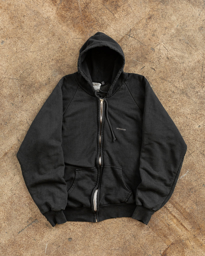 Black Thermal Lined Blank Zip-Up Hooded Sweatshirt - 1980s