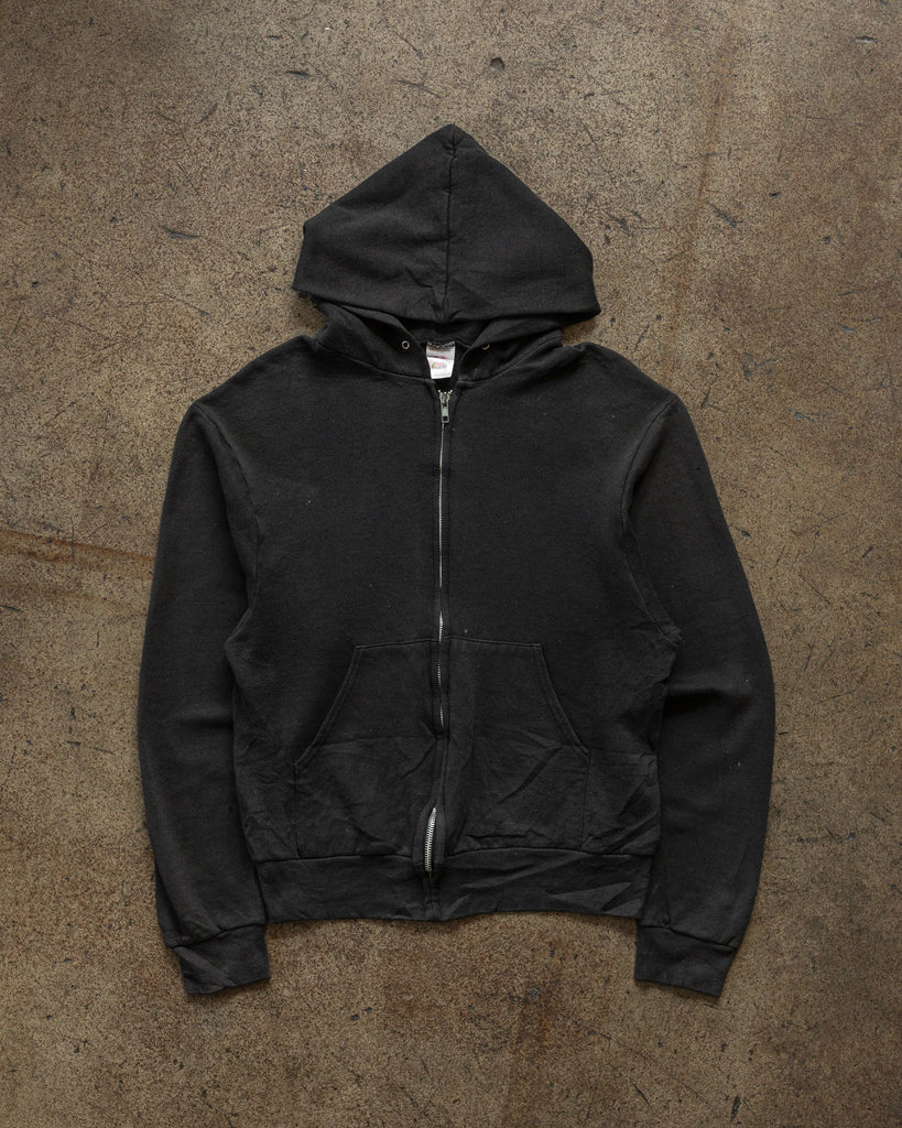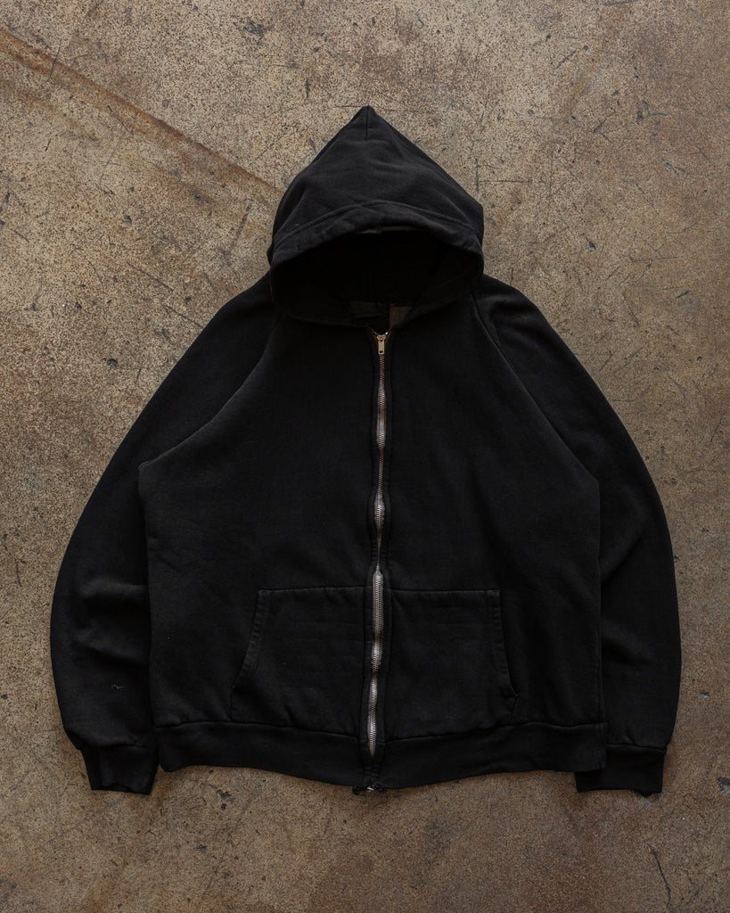 Black Blank Zip-Up Hooded Sweatshirt - 1980s