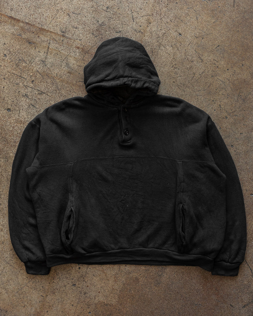Black Thermal Lined Henley Hooded Sweatshirt - 1990s