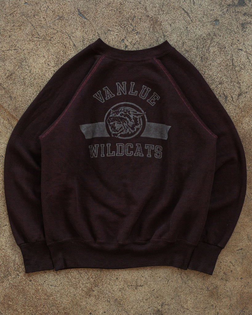 Burgundy Overdyed "Vanlue Wildcats" Raglan Crewneck Sweatshirt - 1980s
