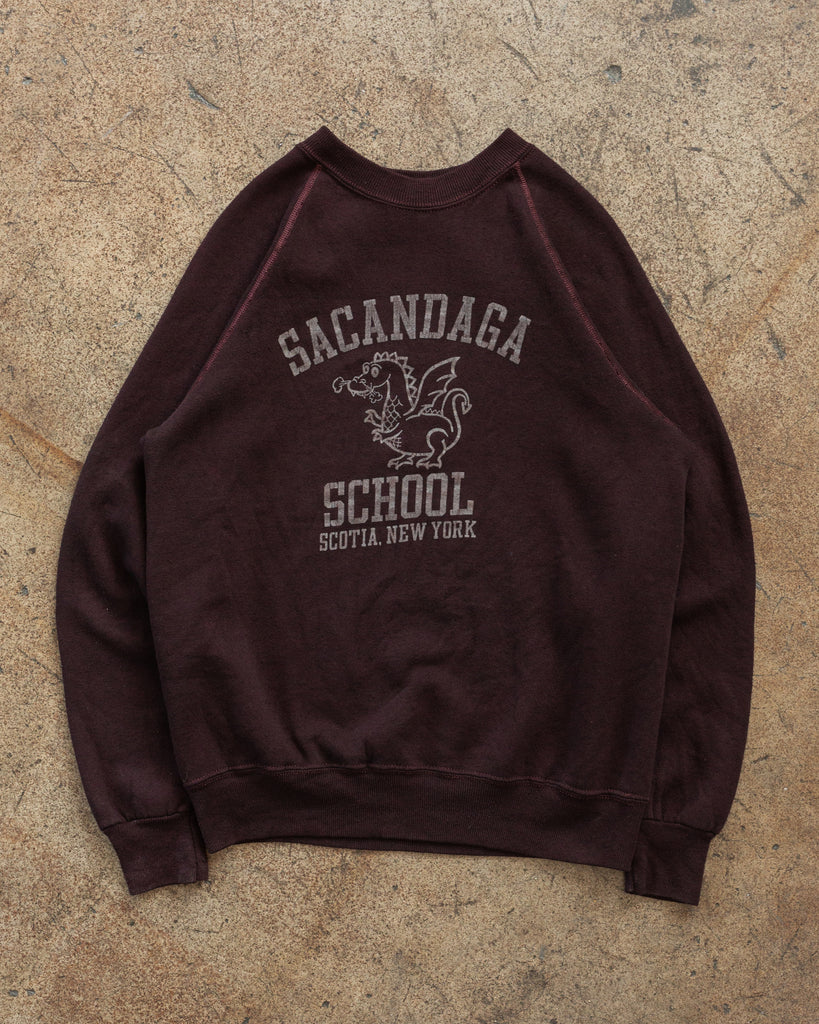 Burgundy Overdyed "Sacandaga School" Raglan Sweatshirt - 1980s