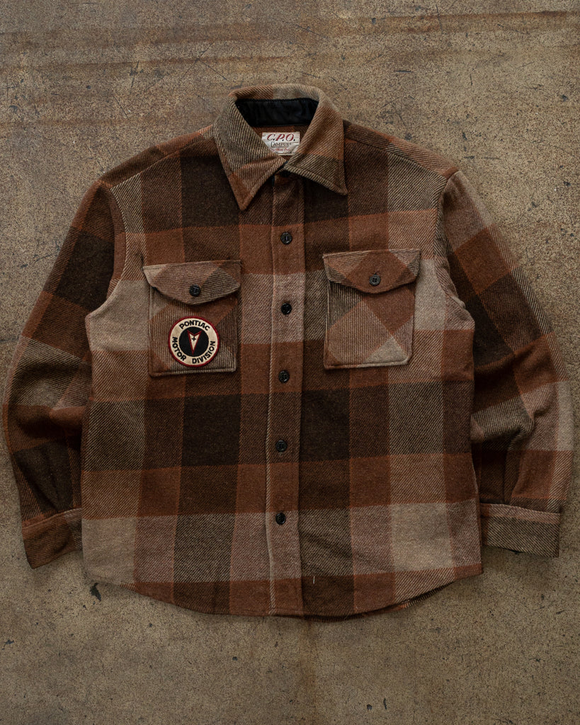 Brown "Pontiac Motor Division" Buffalo Plaid Shirt - 1980s