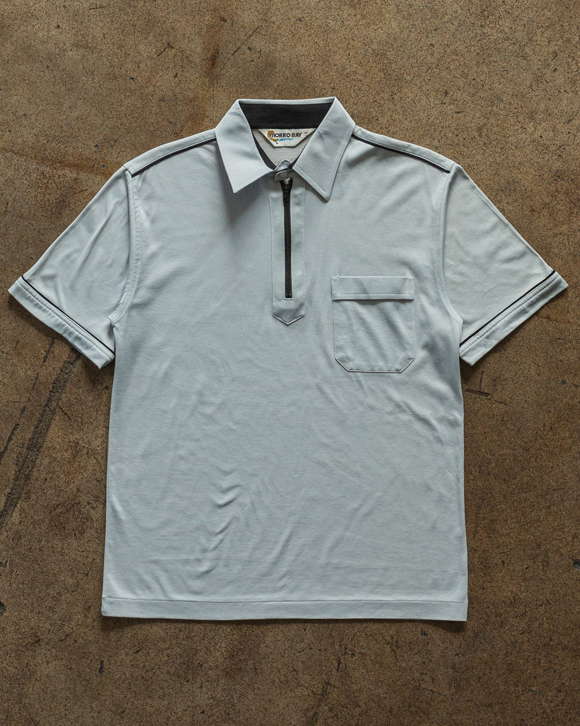 Blue Grey Zip-Up Polo Shirt - 1990s