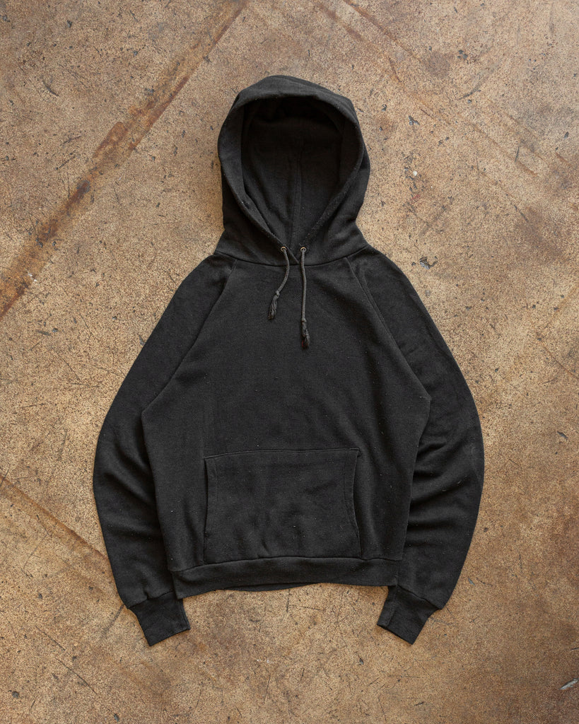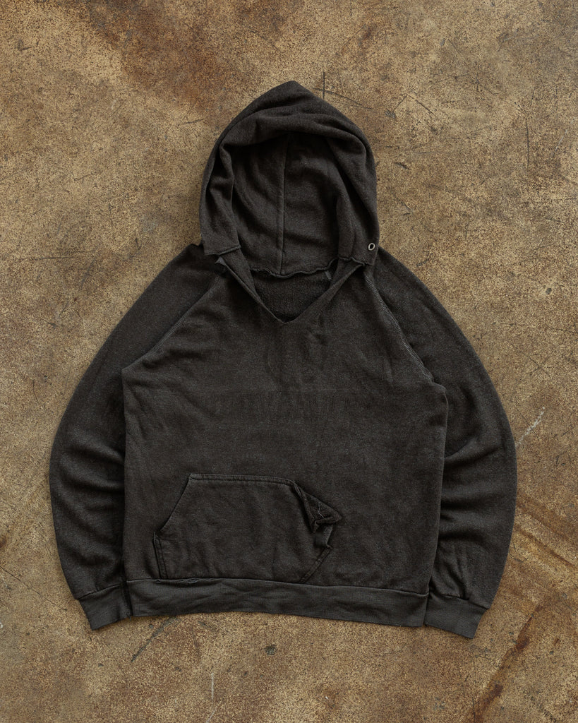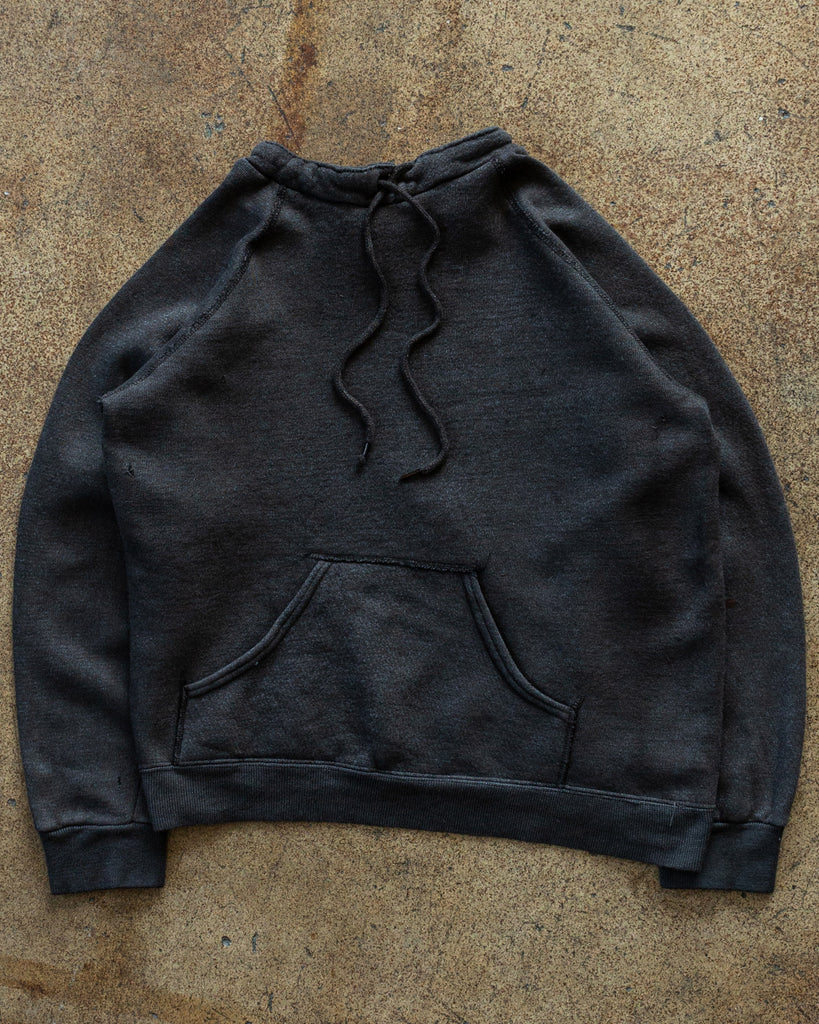 Charcoal Black Blank Raglan Hooded Sweatshirt - 1980s