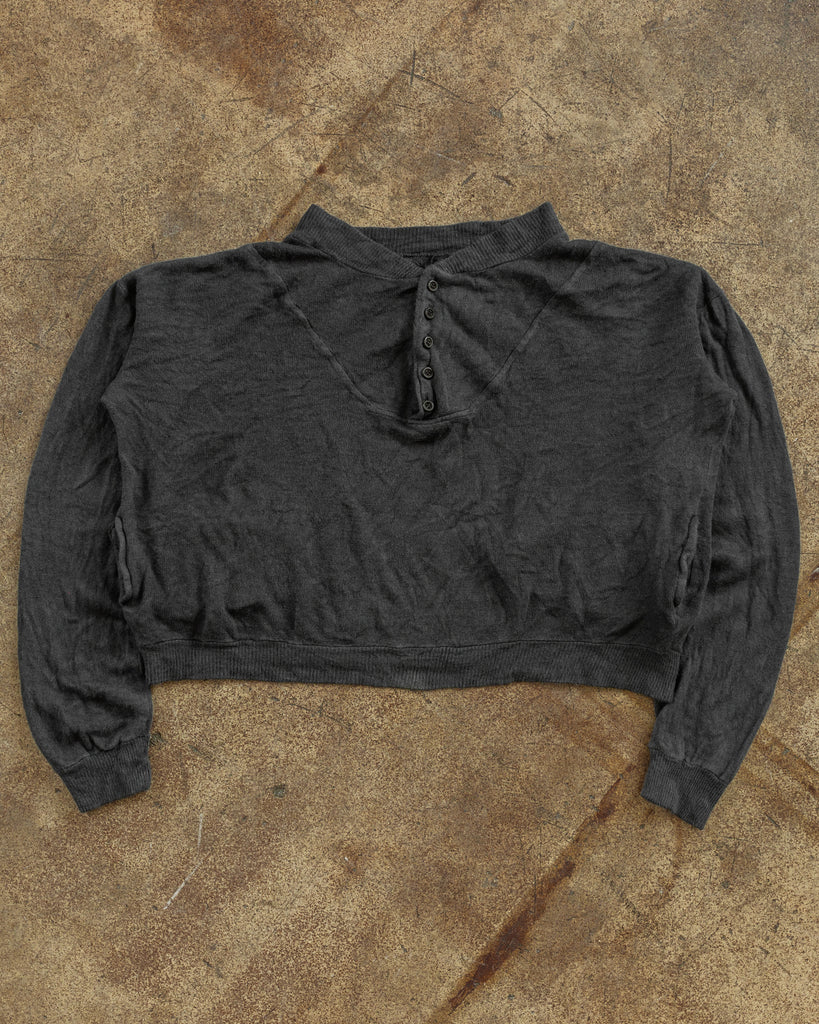 Charcoal Cropped Henley Knit Sweater - 1980s