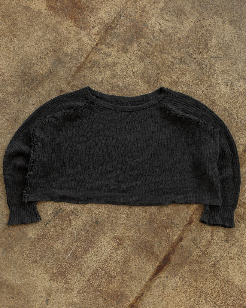 Charcoal Knitted Cropped Thrashed Sweater - 1980s