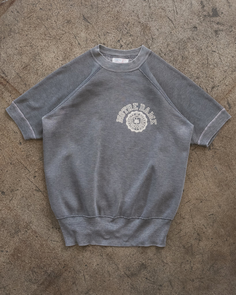 Charcoal Grey "University Of Notre Dame" Short Sleeve Sweatshirt - 1960s