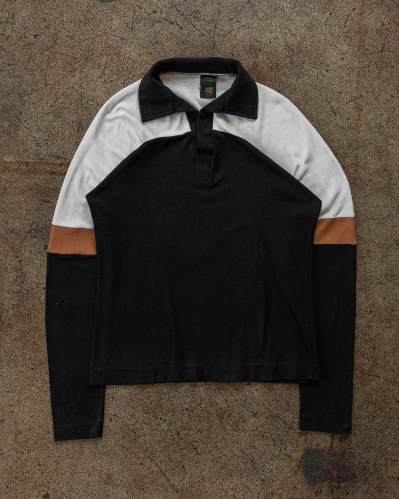 Color Block Raglan Knitted Polo Shirt - 1970s