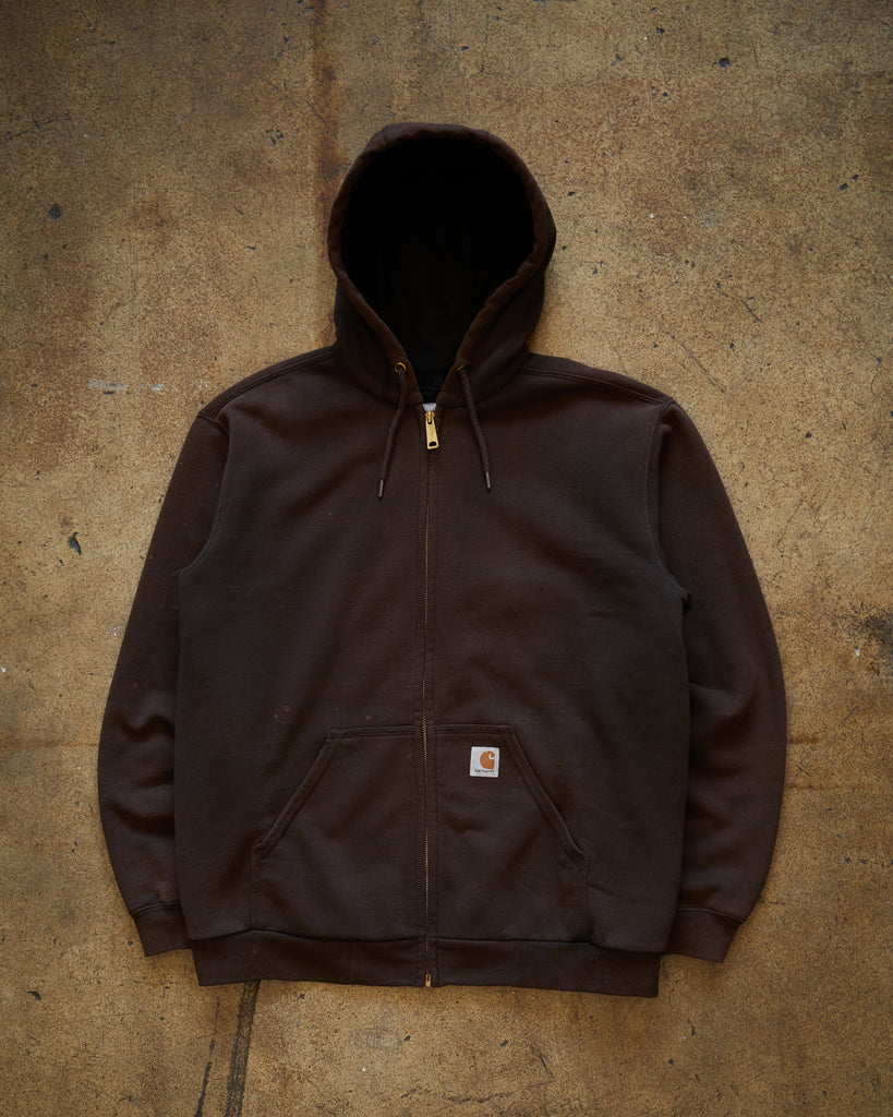 Carhartt Faded Brown Zip-Up Hooded Sweatshirt - 1990's