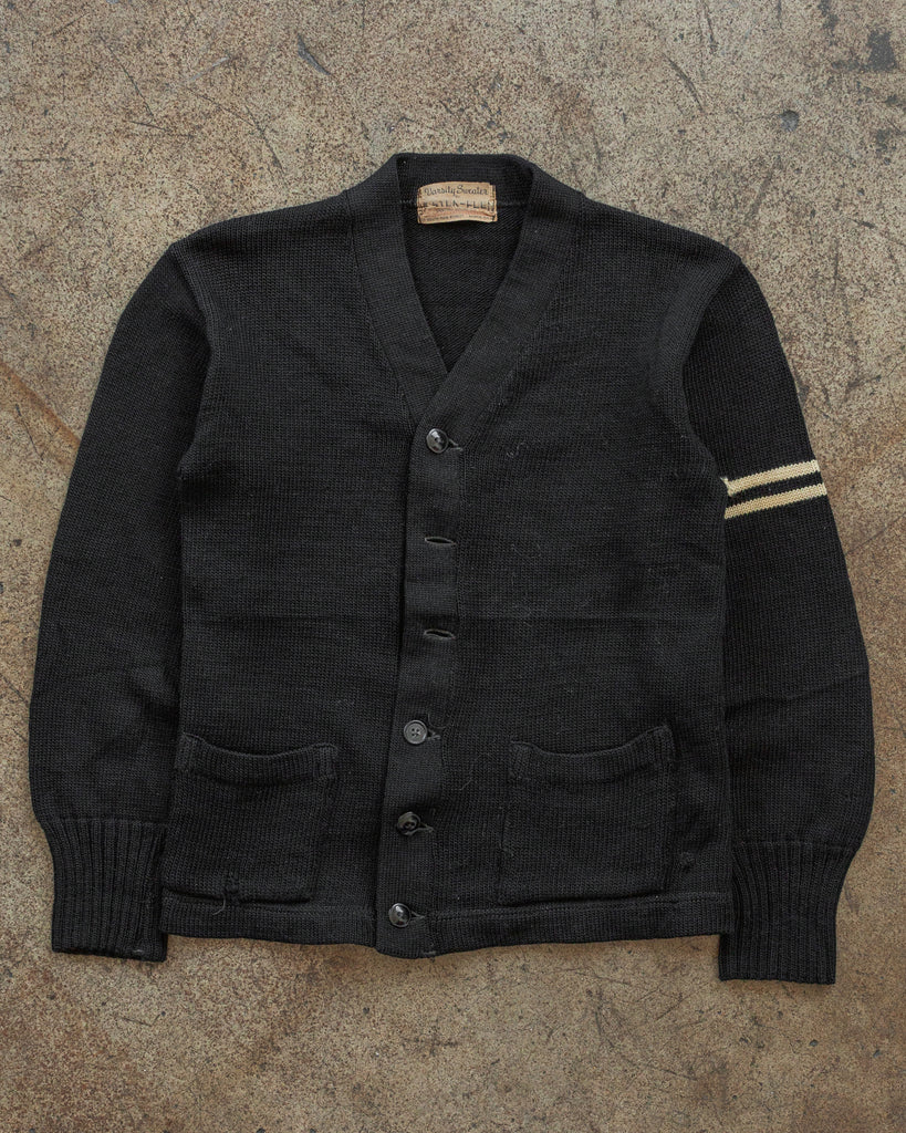 Black Overdyed "Brick TWP." Wool Varsity Jacket - 1970s