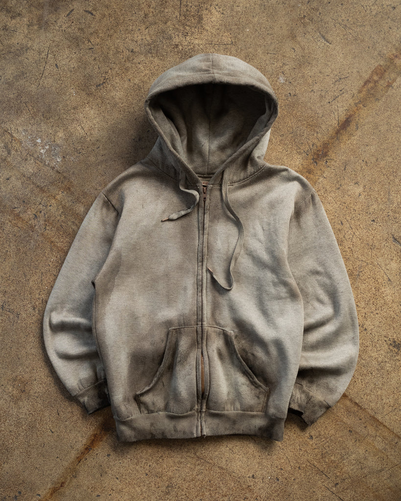 Faded & Distressed Grey Zip-Up Hooded Sweatshirt - 1990s