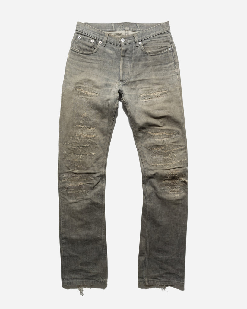 HELMUT LANG 1990S ITALIAN CUT GREY REPAIRED CRASH DENIM