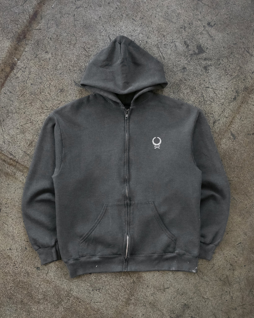 Faded Black Zip-Up Graphic Hooded Sweatshirt