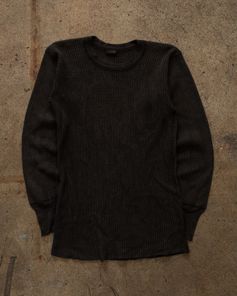 Over-Dyed Black Blank Thermal Long Sleeve Tee - 1990s
