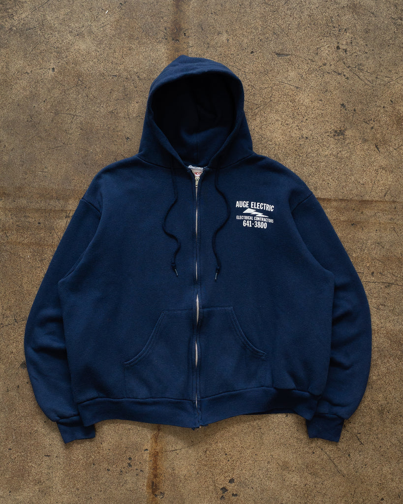 "Auge Electric" Thermal-Lined Crewneck Hooded Sweatshirt - 1980s