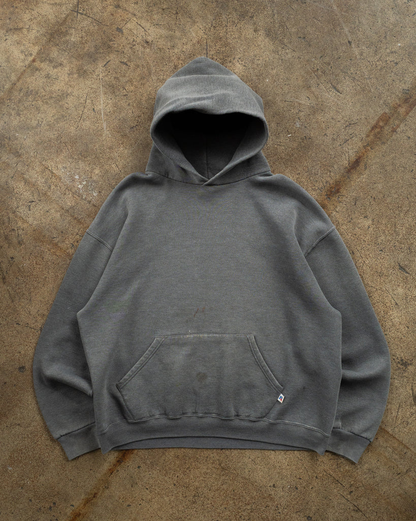 Russell Faded & Painted Charcoal Hooded Sweatshirt - 1990s