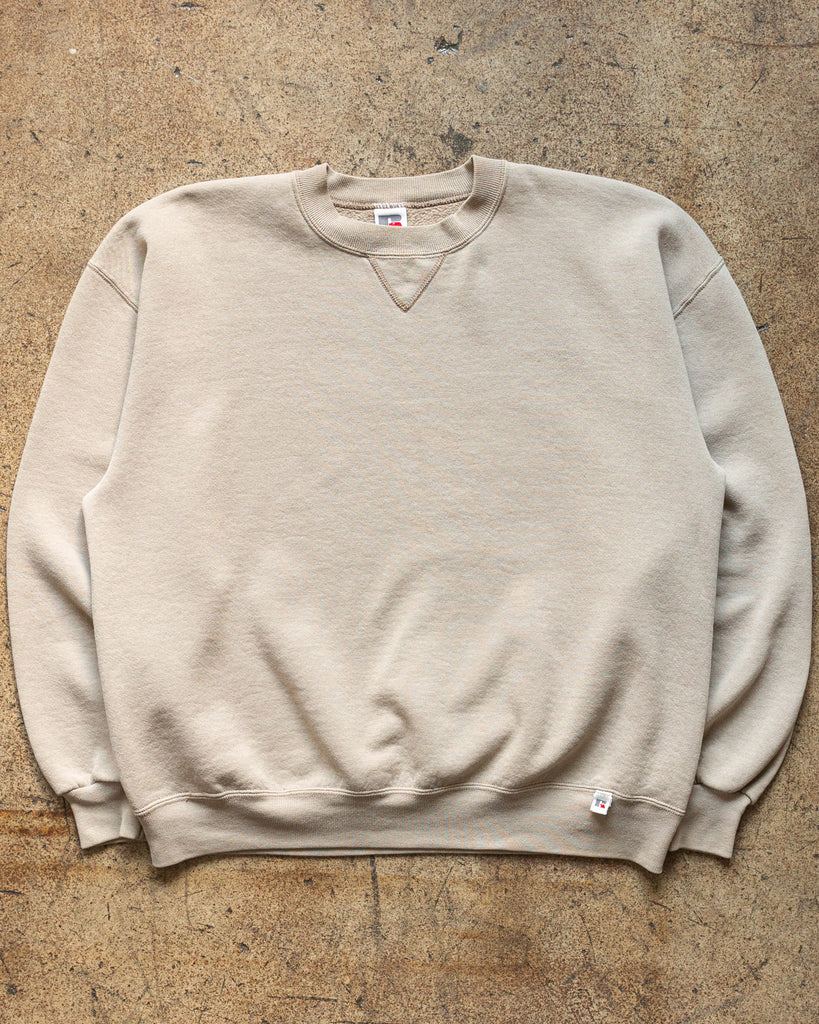 Russell Beige Blank Crewneck Sweatshirt - 1990s