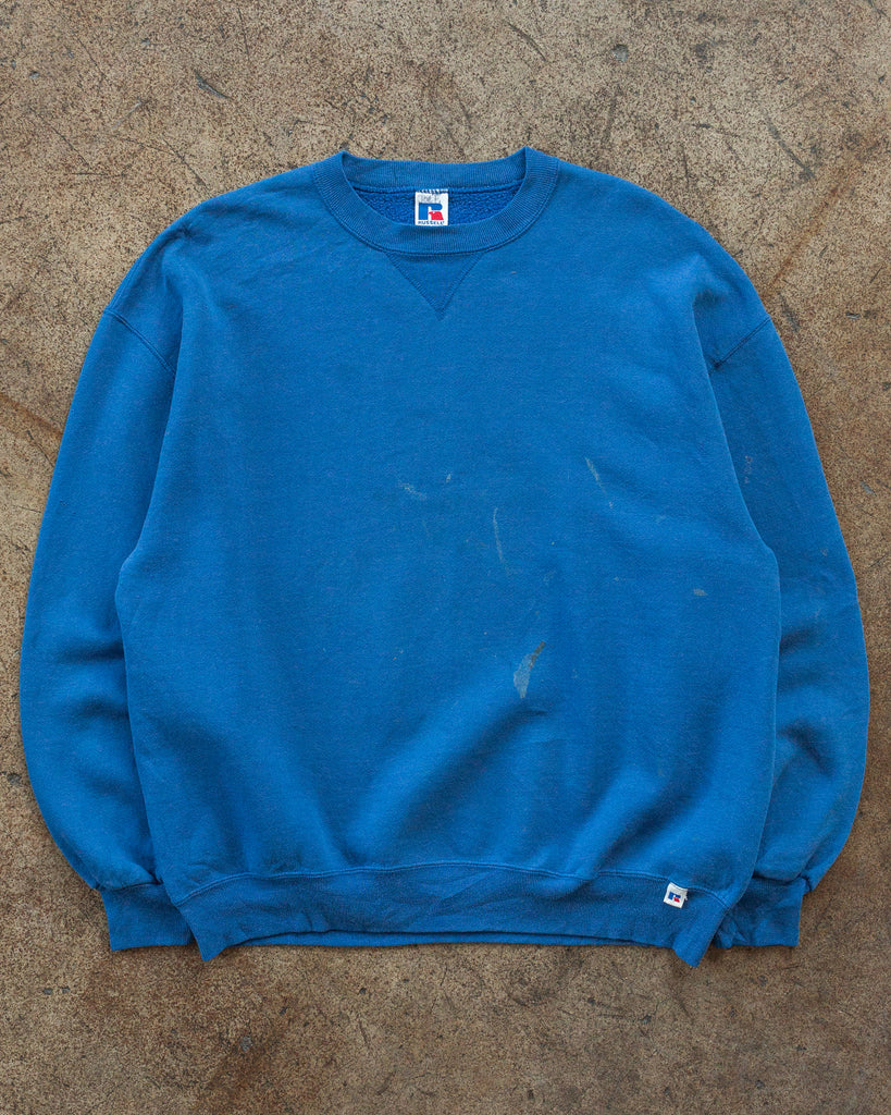 Russell Faded Blue Blank Crewneck Sweatshirt - 1990s