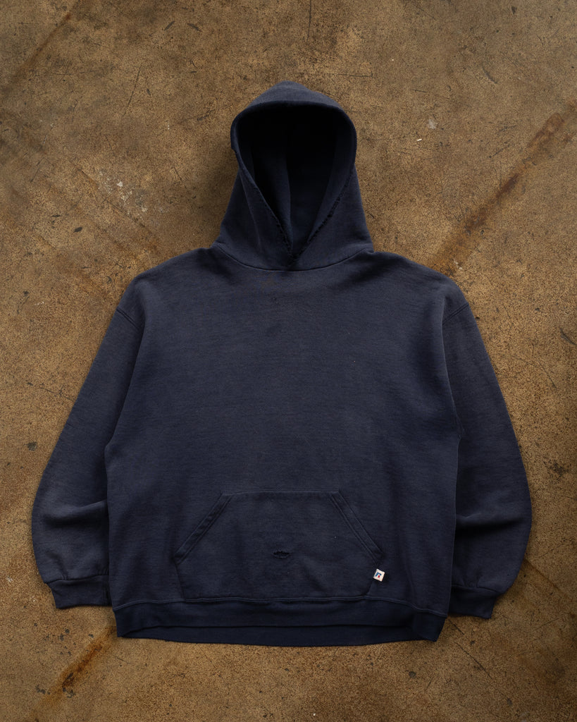 Russell Faded Blue Blank Hooded Sweatshirt - 1990s