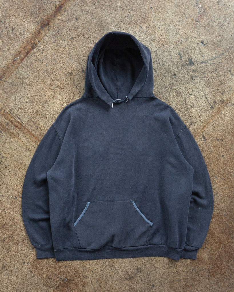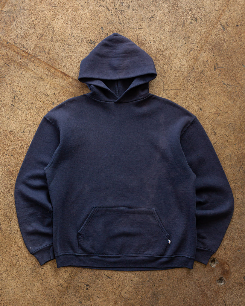 Russell Navy Faded Blank Hooded Sweatshirt - 1980s