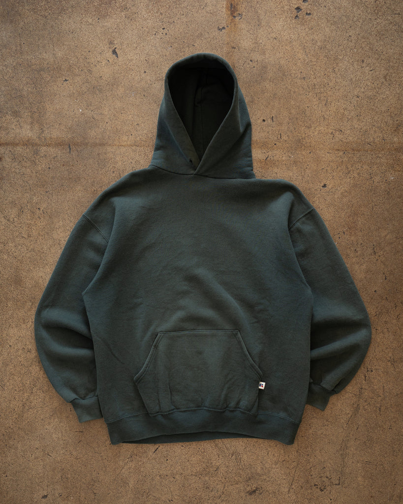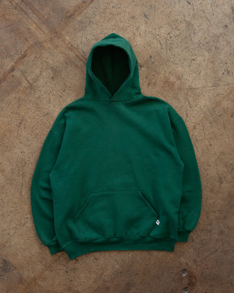 Russell Forest Green Blank Hooded Sweatshirt - 1990s