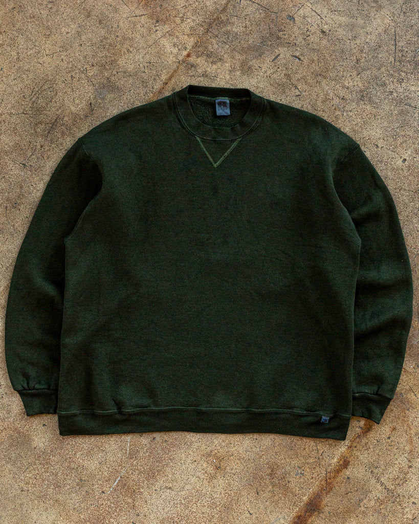 Russell Overdyed Forest Green Blank Crewneck Sweatshirt - 1990s