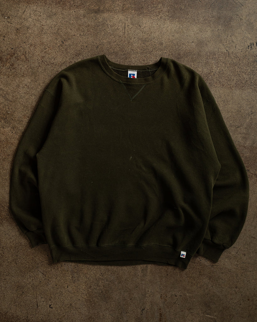 Russell Pine Green Blank Crewneck Sweatshirt - 1990s