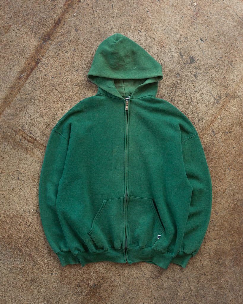 Russell Pine Green Zip-Up Hooded Sweatshirt - 1990s