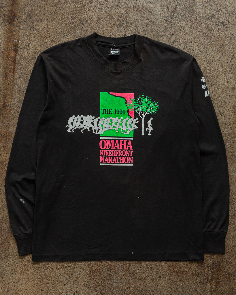 Single Stitched "The 1990 Omaha Marathon" Long-Sleeve Painted Tee - 1990