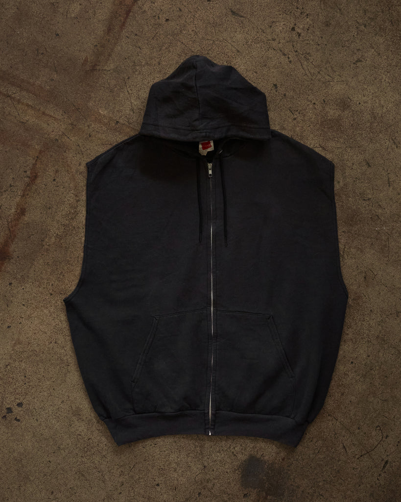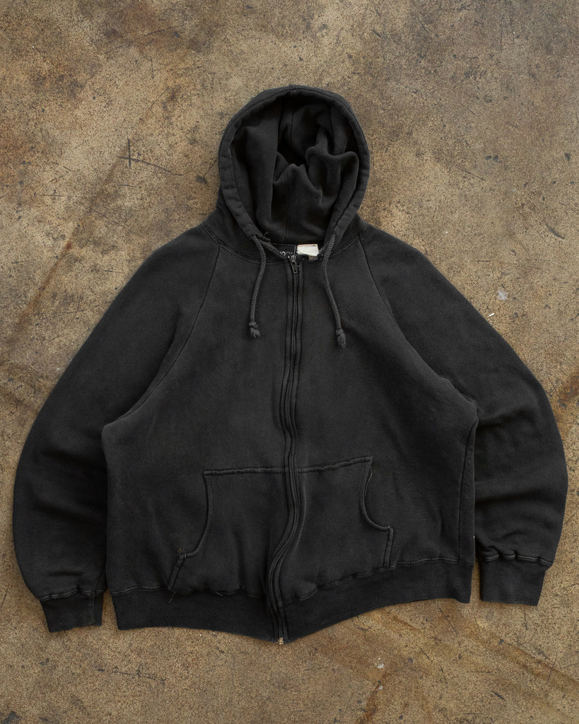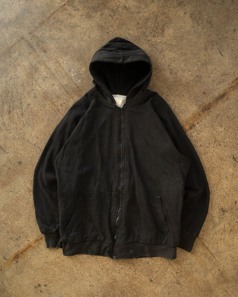 Black Blank Zip-Up Hooded Sweatshirt - 1980s