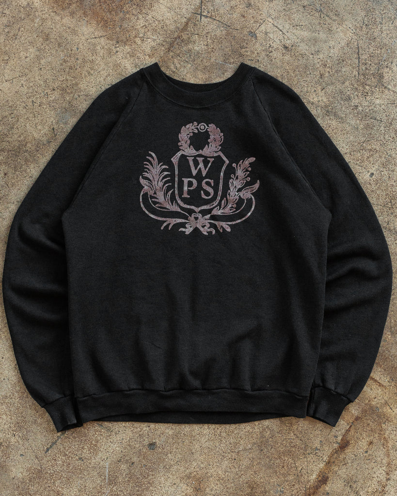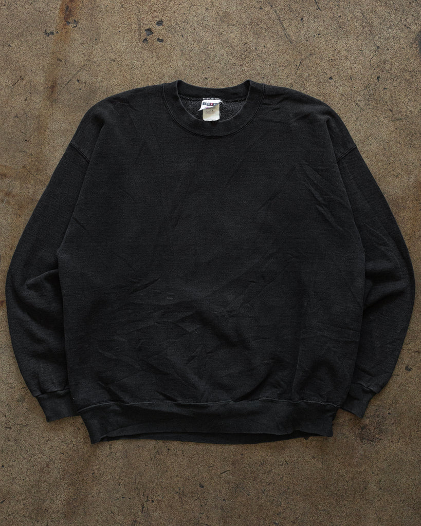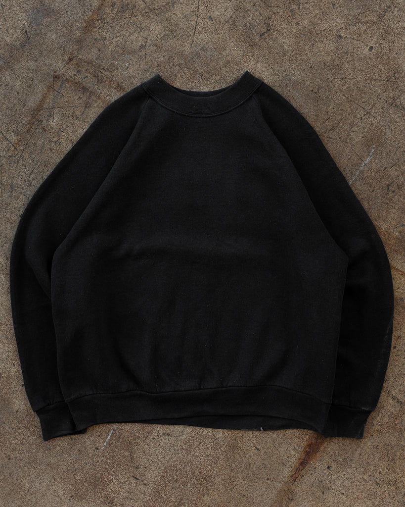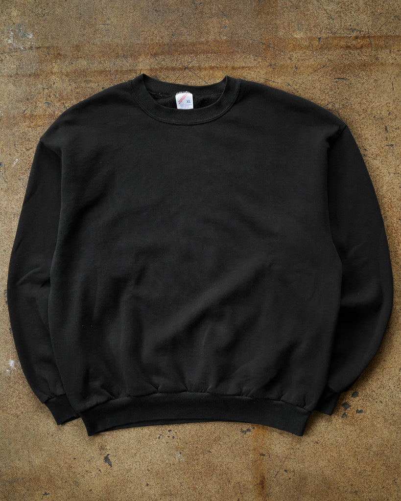 Black Blank Thermal-Lined Crewneck Sweatshirt - 1990s