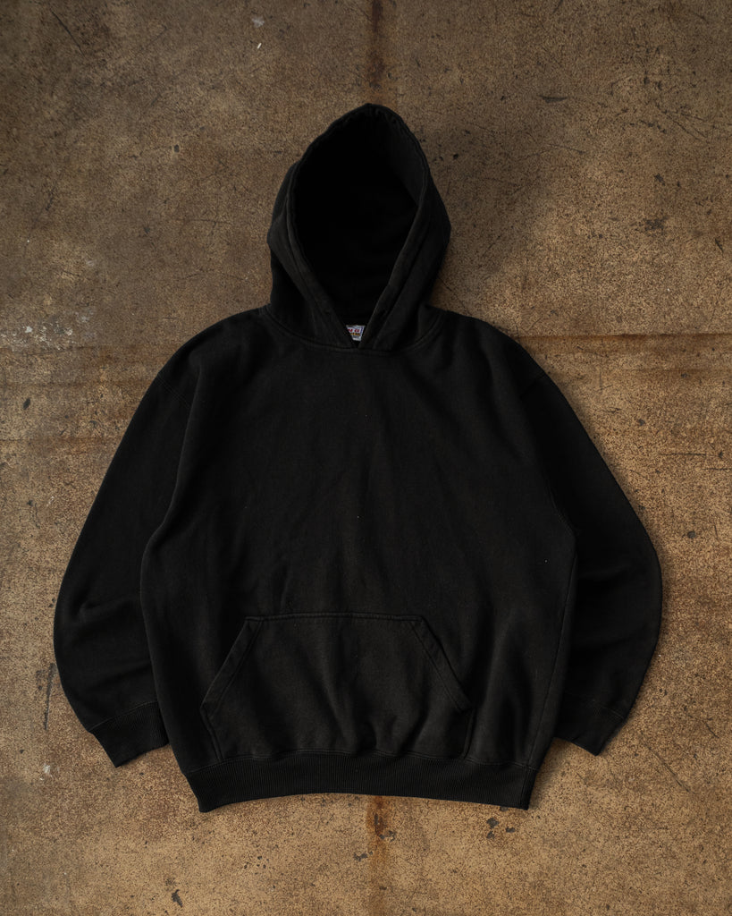 Black Blank Thermal-Lined Hooded Sweatshirt - 1990s