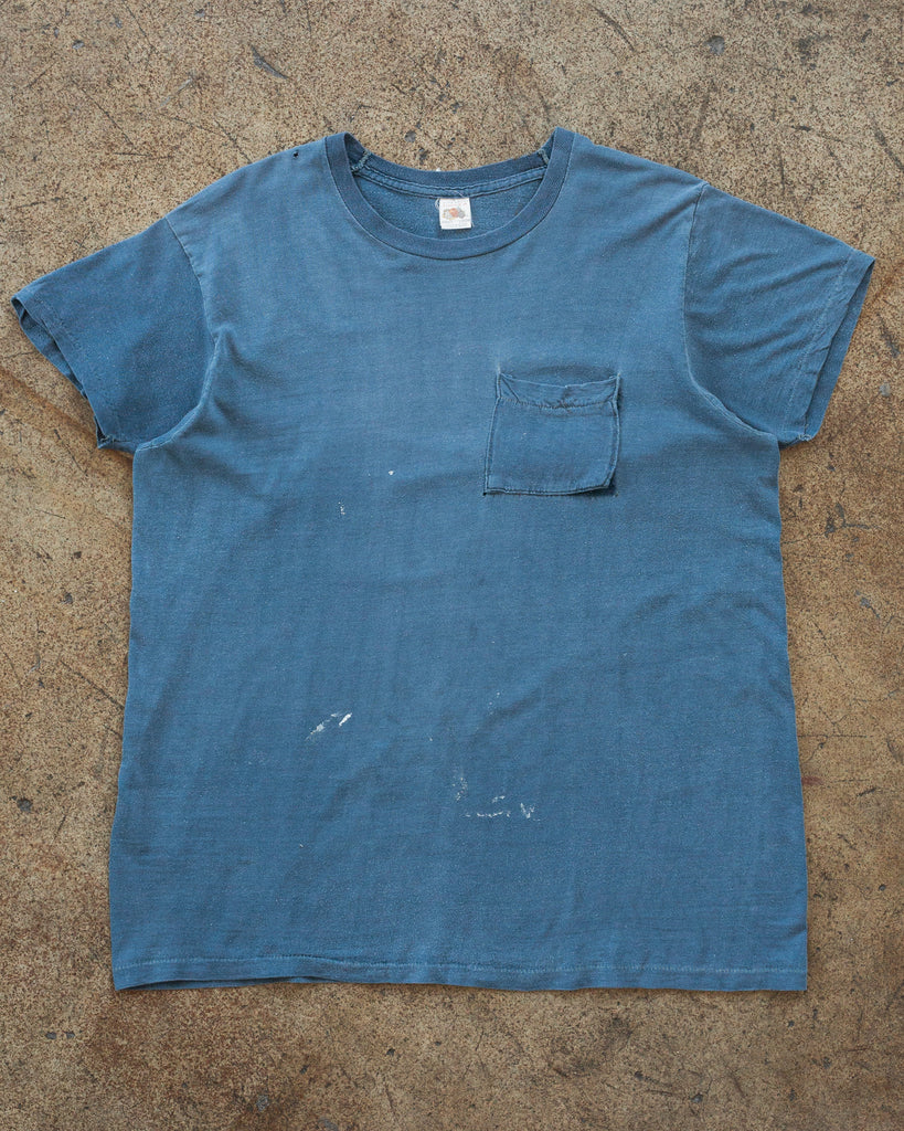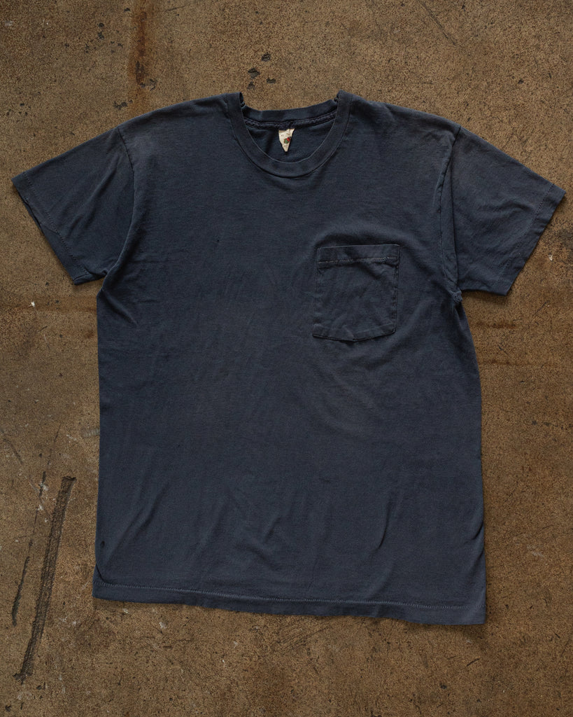 Single Stitched Blue Blank Pocket Tee - 1980s