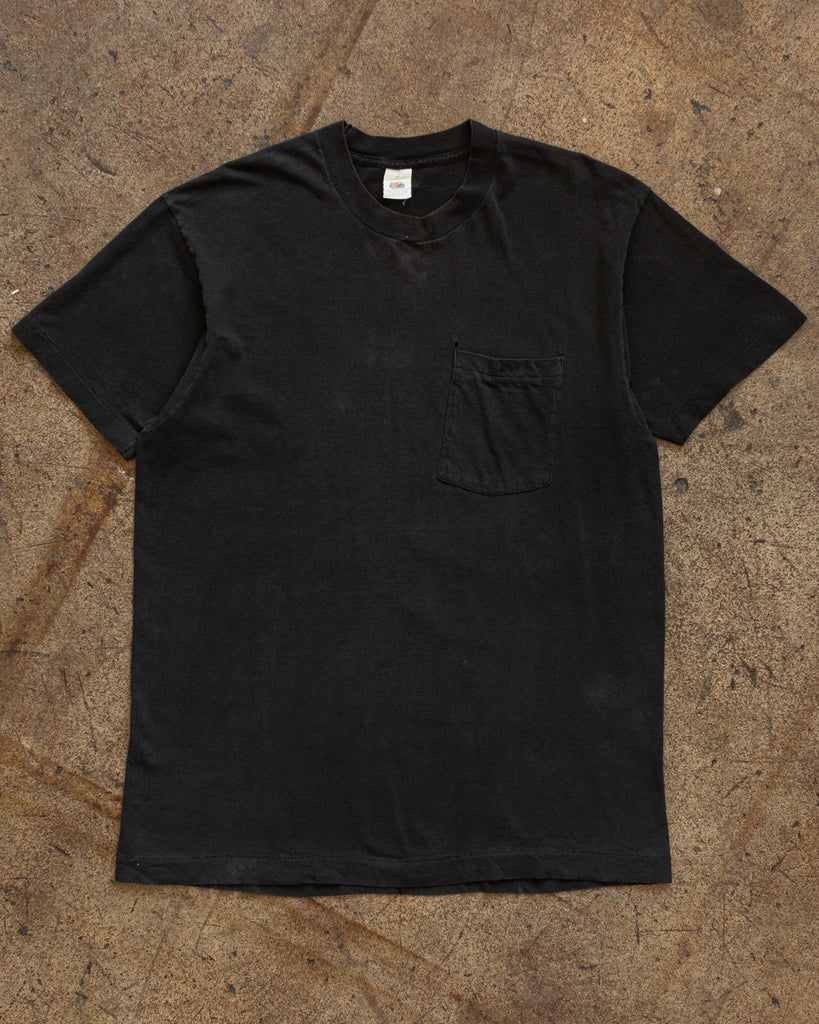 Single Stitched Black Blank Pocket-Tee - 1990s