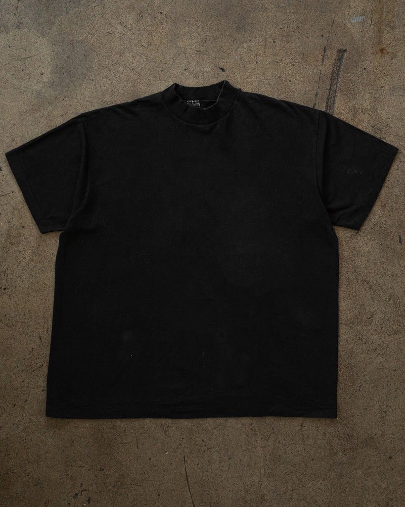 Single Stitched Black Blank Mock Neck Tee - 1990s