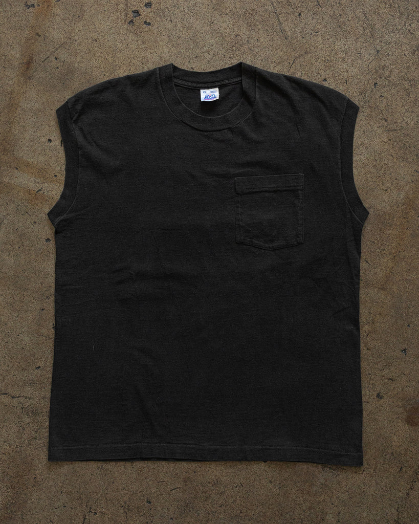 Single Stitched Black Blank Removed Pocket Sleeveless Tee - 1990s