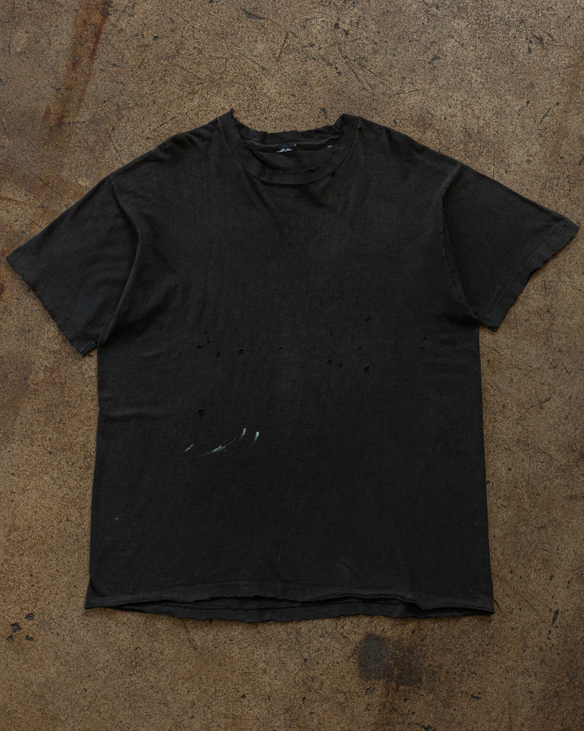 Single Stitched Black Blank Painted & Distressed Tee - 1990s