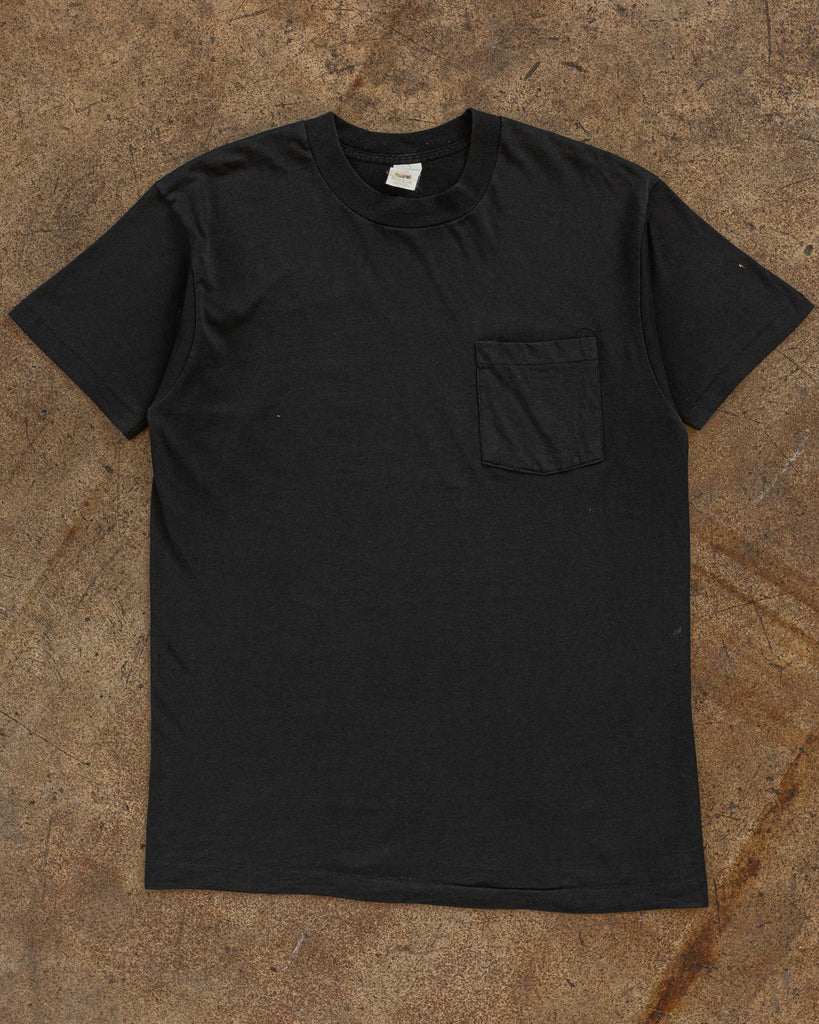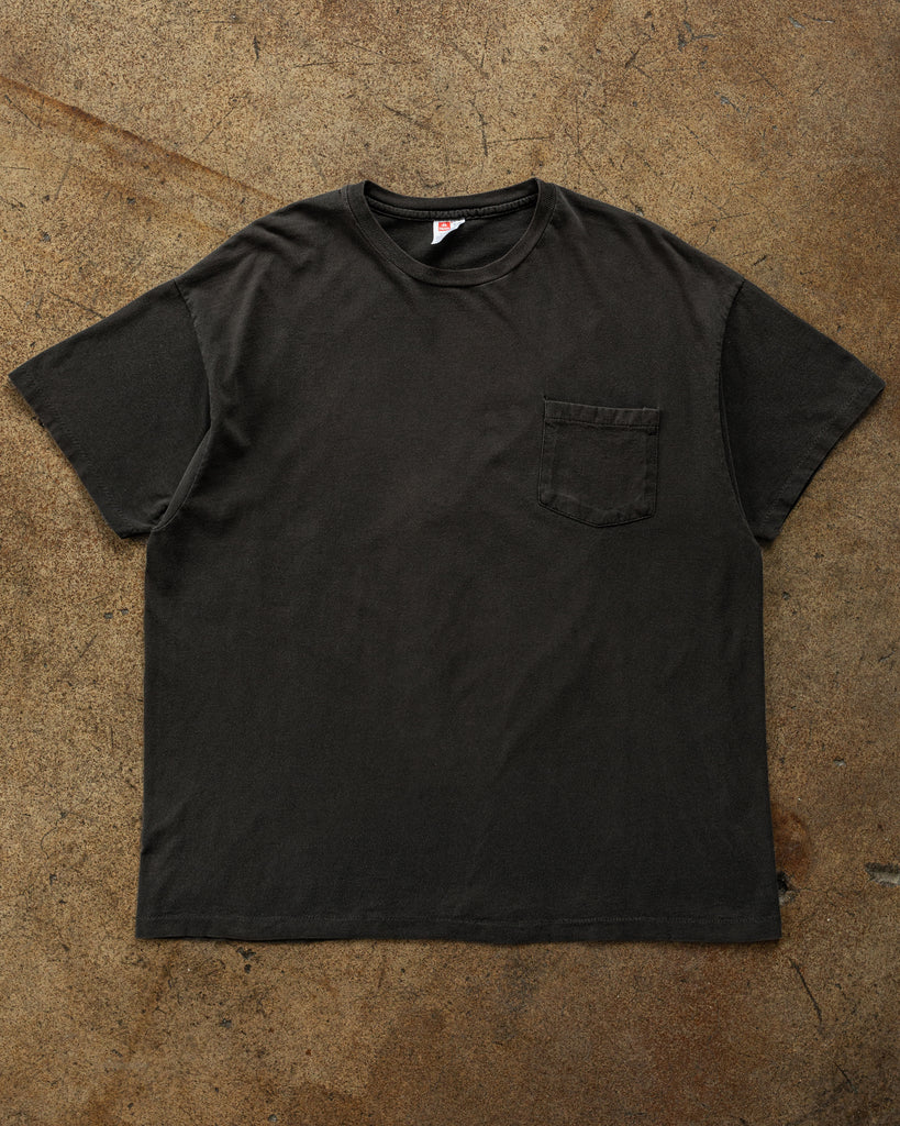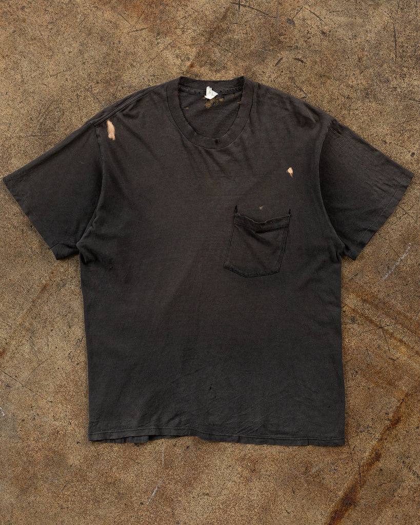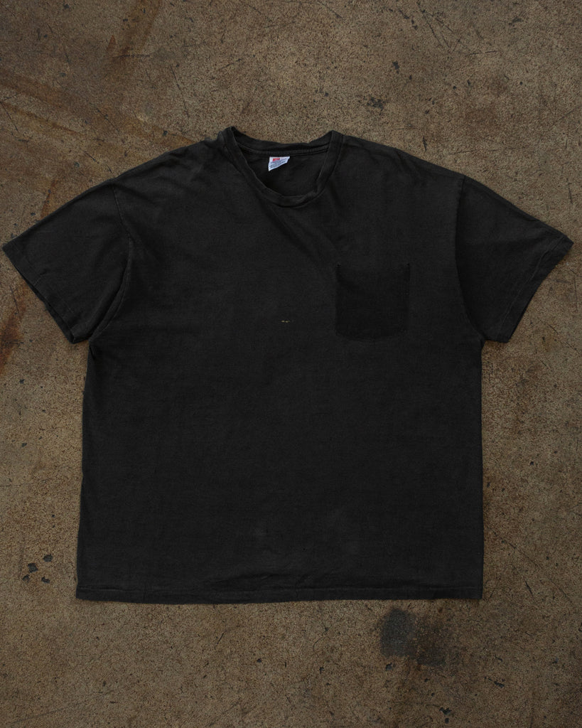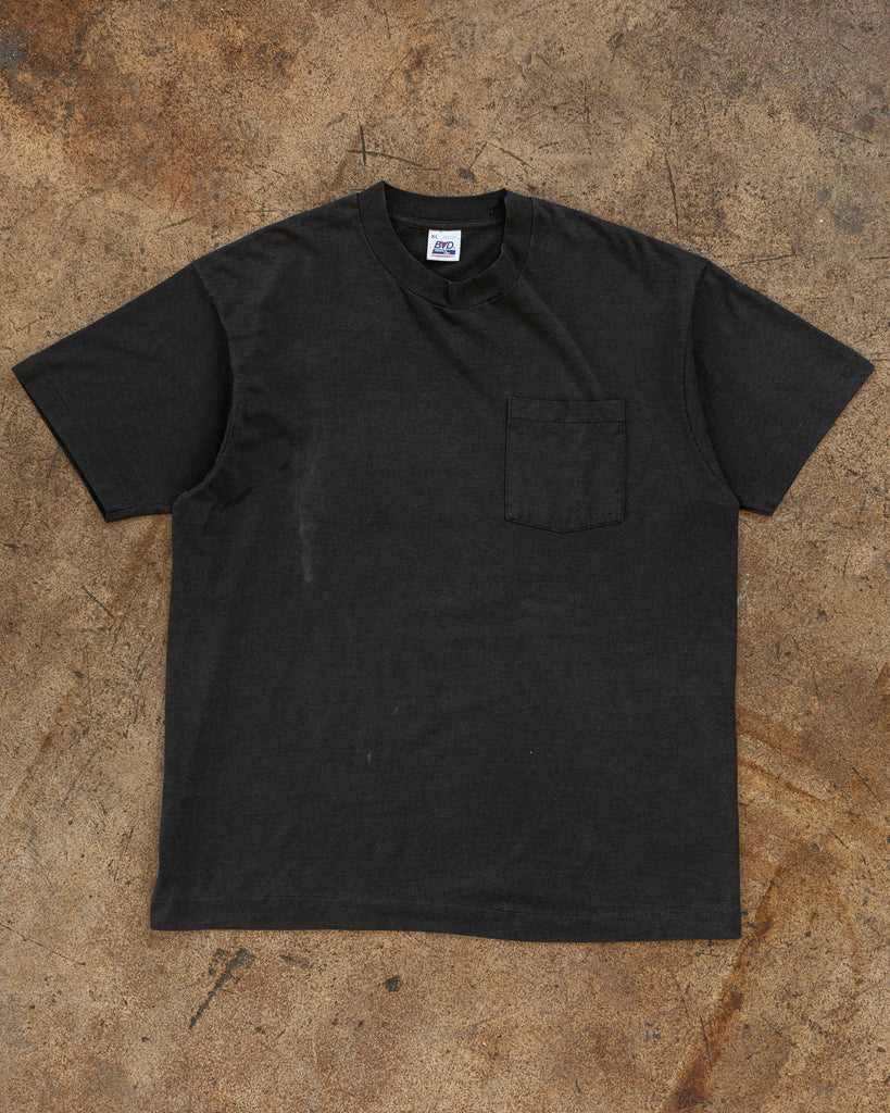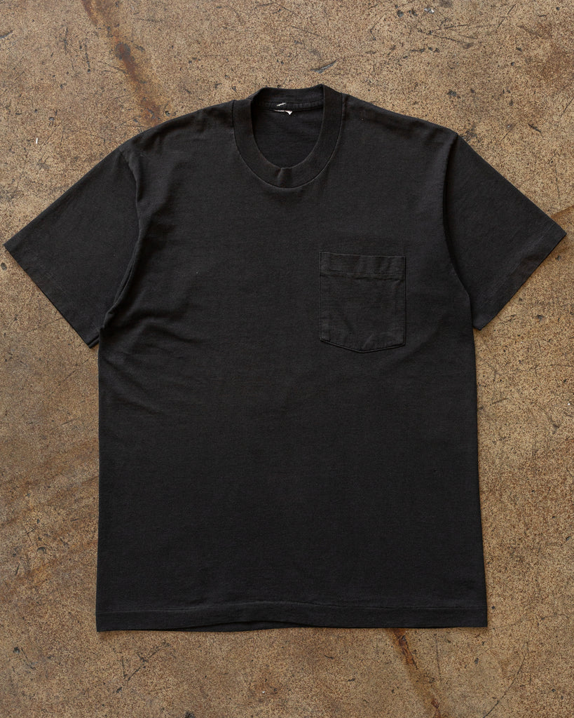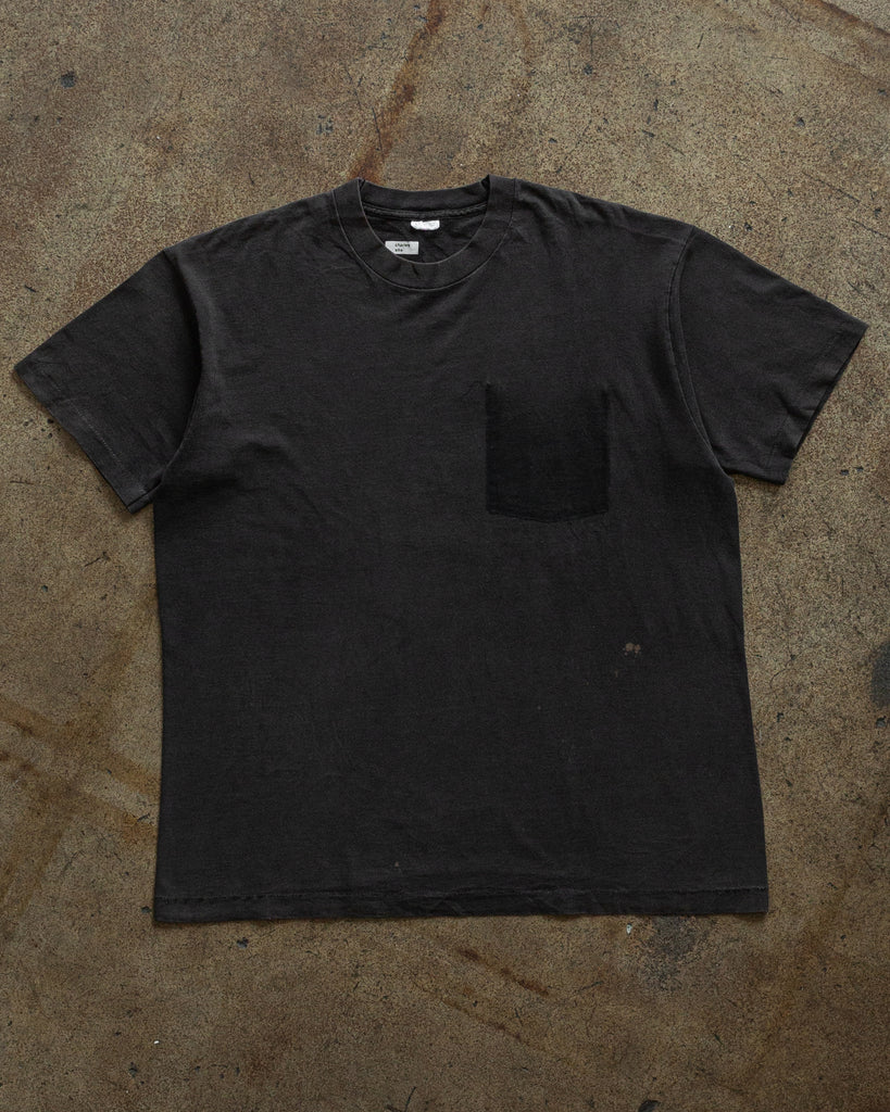 Single Stitched Faded Black Blank Pocket Tee - 1990s